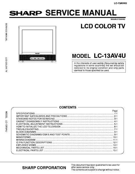 Presently you are looking with regard to an Sharp Lc 13av4u Lcd Tv Service Manual example that we provide here inside some form of document formats like as PDF, Doc, Strength Point, and also images that will make it easier for you to create an Sharp Lc 13av4u Lcd Tv Service Manual yourself. For a clearer look, you are able to open some examples below. All of the examples about Sharp Lc 13av4u Lcd Tv Service Manual about this website, we get from a number of sources so you can create a better file of your own.